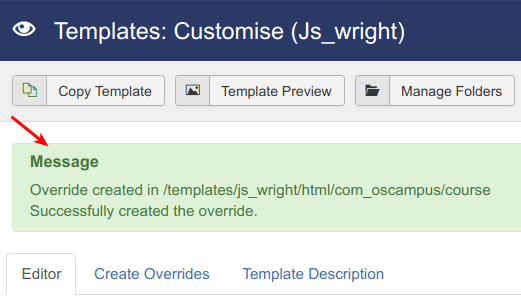 Repeat the steps described above to create a template override. This time, though, create a template override for com_oscampus > pathway: