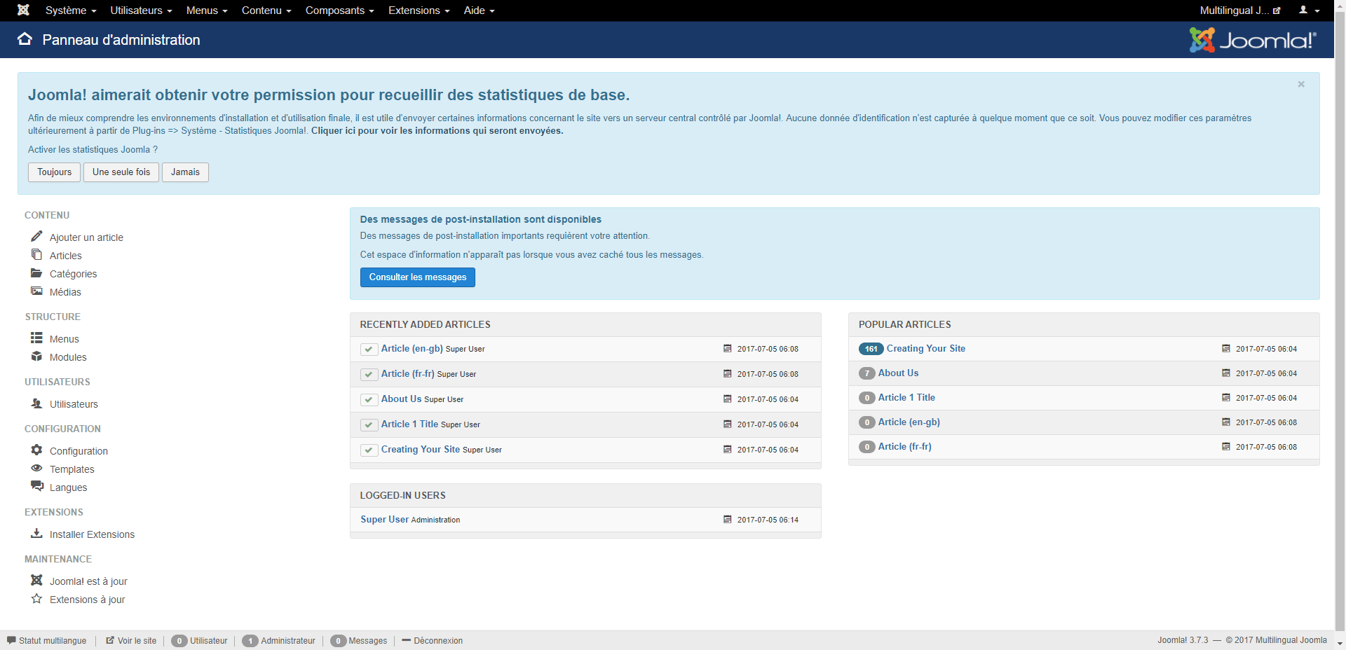 We have a multilingual site that is working successfully! So, if you install a brand new Joomla site and choose the settings that we just did, it really is a big help in getting started with a multilingual Joomla site.
