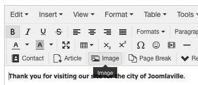 - Using your cursor, select the first text in the article: “Thank you for visiting our site for the city of Joomlaville.”