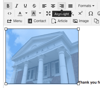 - Click the image inside your article, and the small picture button becomes highlighted, as shown below: