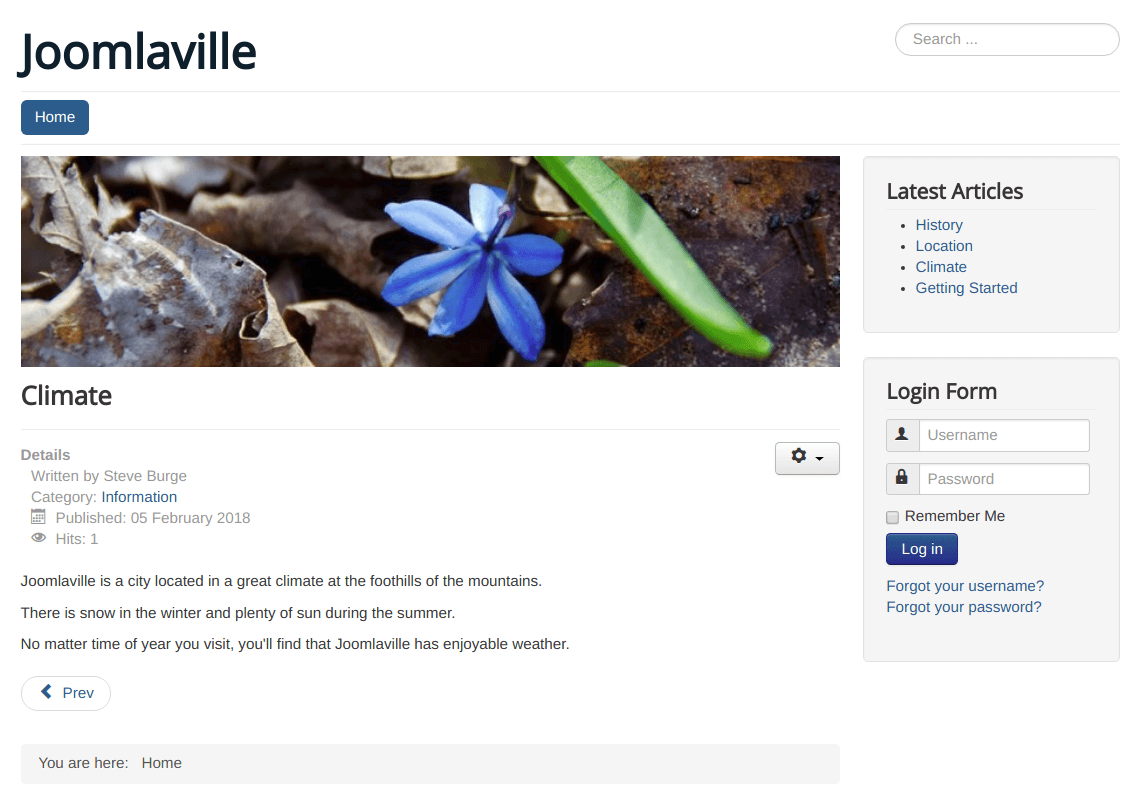 - If you now visit the front of your site and click "Climate" in the "Latest Articles" module, your article will look like the image below: