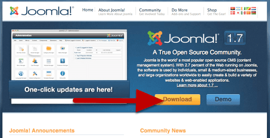 We need to download a copy of the file from Joomla.org. Head there and download a fresh copy of Joomla 1.7:
