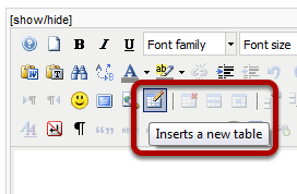 Click your mouse on the "Inserts a new table" button in the third row of your JCE Editor.