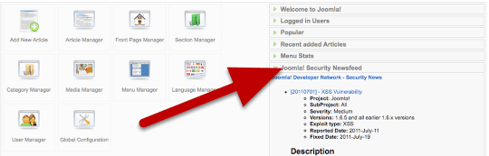 Login to your Joomla administrator area and you'll see a red message saying "Error loading feed data".
