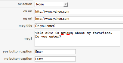 - ok action: what happens when people agree or disagree with your pop-up question. The default is "none" which leaves them on the same page.