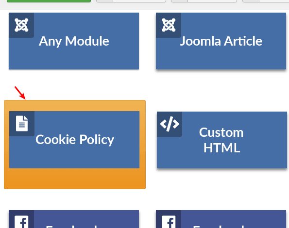- Under the Select Cookie Policy article option, select a Joomla article with your site's Cookie Policy: