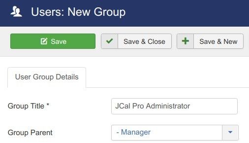 - Group Title: give it a descriptive name, similar to "JCal Pro Administrator".
