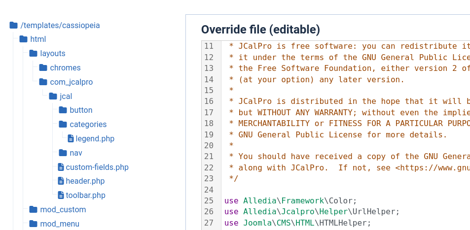 - Go to html > layouts > com_jcalpro > jcal > categories > legend.php: