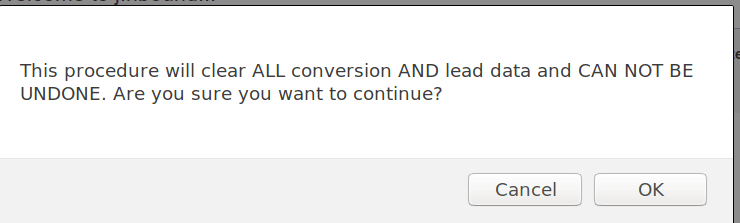 The Reset button allows you to clear all the conversions and leads statistics. This would be useful when you, for example, finished testing your inbound marketing campaign(s) and would like to launch the campaign(s) in a production mode.