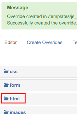 You will see the "Override created in /templates/<your_template_name>/html/com_oscampus/course" message. Joomla has automatically created the override files for you. That was easy!
