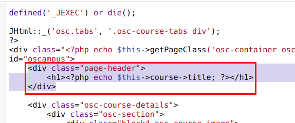 You can now safely modify the copied file. Notice that we have this folder in our template's folder: /com_oscampus/course/. You will probably need to create that folder as it is unlikely to exist already.