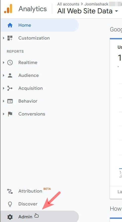 - On the left-hand menu on your Google Analytics Home page, click "Admin":