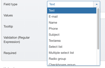 When you're creating your Shack Form, there are 14 different field types you can choose from: