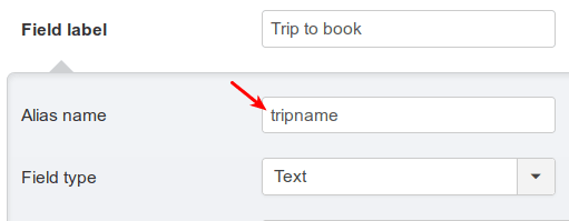 For the next step, I need to copy this filed alias, which is "tripname":