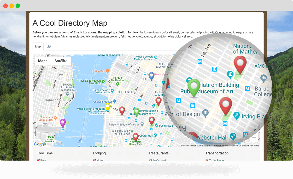Travertine is designed to look great with Shack Locations, the mapping solution for Joomla. If you're building a directory with maps site we recommend you to complement Travertine template with our Shack Locations extension.